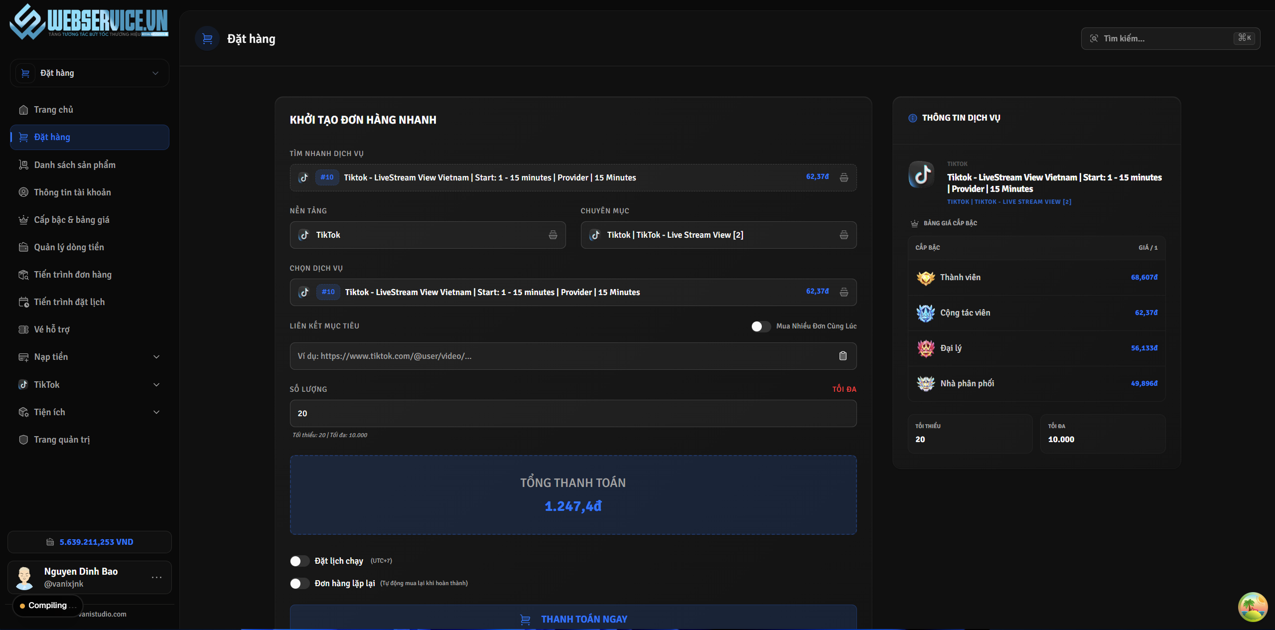 [SMM PANEL] Pre-order thiết kế website bán tương tác mạng xã hội
